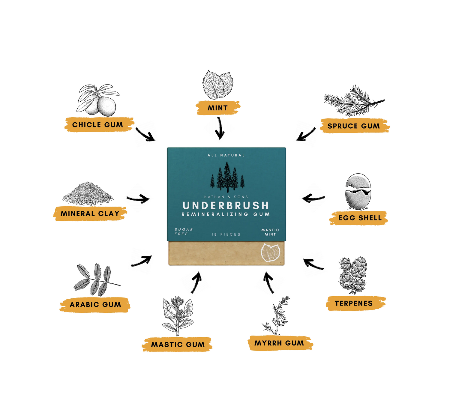Our gum is packed with the vital minerals our teeth need to effectively remineralize and repair. In addition to phosphorus, iron, copper and zinc, our gum contains hydroxyapatite which is the same compound our teeth are made of. This combination of minerals helps to rebuild tooth enamel and combat decay.
